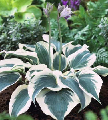 Funkia Blue Ivory, znana również jako Hosta 'Blue Ivory', to efektowna bylina, która może osiągnąć wysokość do 50 cm i szerokość do 60 cm. Dzięki powolnemu rocznemu przyrostowi około 5-10 cm, roślina ta jest doskonałym wyborem do dodania długotrwałego piękna do każdego ogrodu. Roślina ta znana jest z dużych, atrakcyjnych liści i delikatnych kwiatów.Funkia Blue Ivory to roślina ozdobna, którą można posadzić w ogrodzie, a także w pojemnikach na balkonie lub patio. Preferuje stanowiska cieniste lub częściowo zacienione i często stosowana jest jako roślina okrywowa lub obwódkowa. Może być również sadzona w pobliżu stawów lub strumieni, dodając bujne zielone tło do ogrodów wodnych.Funkia Ivory preferuje dobrze zdrenowaną, wilgotną glebę z dużą ilością materii organicznej. Dobrze rozwija się na stanowiskach zacienionych lub częściowo zacienionych, ale może tolerować trochę słońca, jeśli gleba jest utrzymywana w wilgoci. Ta roślina nie jest odporna na suszę, więc ważne jest, aby zapewnić jej odpowiednią ilość wody podczas gorących i suchych okresów.Funkia Ivory Funkia jest rośliną mało wymagającą, która nie wymaga przycinania. Przydatne może być regularne podlewanie, zwłaszcza w gorących i suchych okresach. Ściółkowanie wokół podstawy rośliny może pomóc w utrzymaniu wilgoci w glebie. Jest odporna i nie wymaga ochrony zimowej, jednakże korzystne może być dzielenie jej karpy co kilka lat.Funkia Ivory wytwarza duże, sercowate, niebiesko-zielone liście z białymi marginesami, które czynią ją atrakcyjnym dodatkiem do każdego ogrodu. W lecie wytwarza wysokie łodygi delikatnych, lawendowych kwiatów o długości ok. 5 cm, pojawiają się w lipcu sierpniu na 35 cm pędach kwiatostanowych.Jest odporna na mróz i może przetrwać niskie temperatury, ale w surowym klimacie może skorzystać z ochrony zimowej. Nie jest też rośliną miododajną, co oznacza, że nie przyciąga pszczół ani innych zapylaczy po nektar i pyłek.