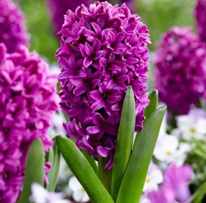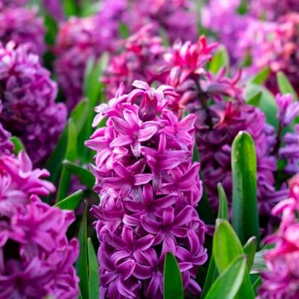 Hiacynt ‘Miss Saigon’ to dekoracyjna odmiana hiacyntu wschodniego o intensywnie różowych, lekko purpurowych kwiatach zebranych w zwarte, efektowne grona. Kwiaty są gęsto osadzone na sztywnej łodydze i wydzielają silny, słodki zapach charakterystyczny dla hiacyntów. Odmiana ta wyróżnia się wyrazistą, głęboką barwą, która pięknie kontrastuje z wiosenną zielenią ogrodu.