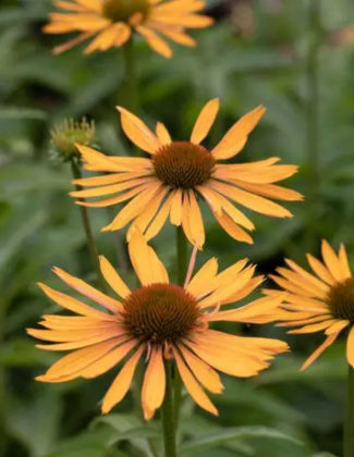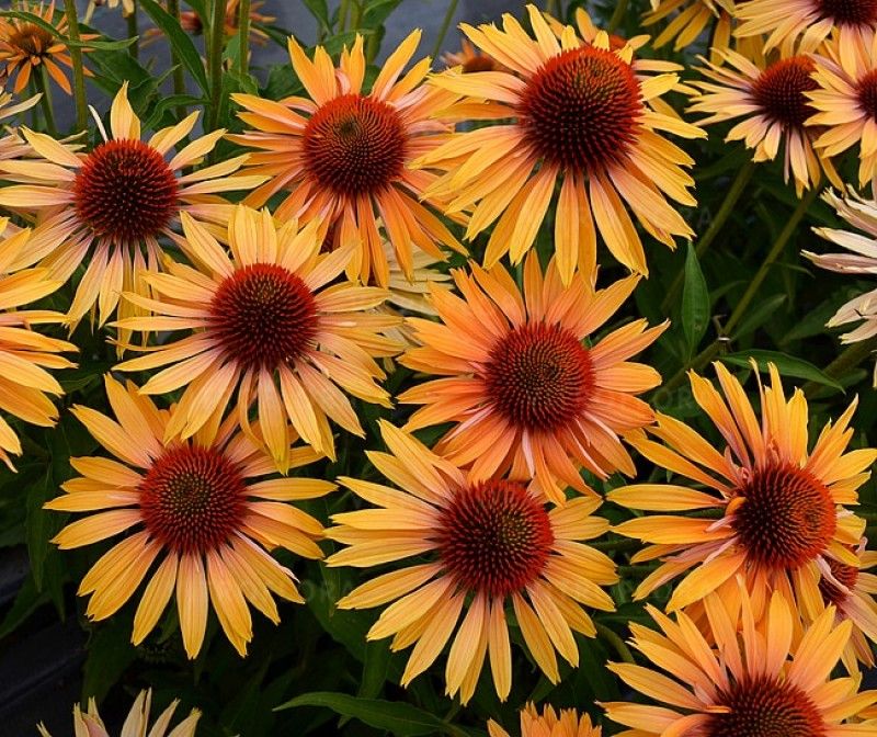 Kępiasta wzniesiona bylina o okazałych pojedynczych koszyczkach kwiatostanowych w kolorze miąższu tropikalnych owoców mango i melona, do czego nawiązuje hawajska nazwa odmiany. Tworzy wzniesione, sztywne kępy, odporne na wiatr i deszcz, dorastające do wysokości 70 cm i średnicy około 50 cm, dość wąskie u podstawy. Pędy i liście są ciemnozielone, pokryte krótkimi, szorstkimi w dotyku włoskami. Liście jajowato-lancetowate, odziomkowe osadzone na długich ogonkach, łodygowe – siedzące. Kwiaty są zebrane w bardzo duże koszyczki kwiatostanowe o średnicy nawet 13,5 cm i osadzone na szczytach sztywnych łodyg. U tej odmiany kwiaty języczkowe są mlecznożółte do jasnopomarańczowych, zebrane po 16-22 w pojedynczy okółek na brzegu kwiatostanu. Mają do 6,5 cm długości, około 11,5 mm szerokości i są szeroko, płasko rozpostarte. Wnętrze kwiatostanu wypełniają krótkie, ciemnopomarańczowe kwiaty rurkowate, ułożone na wypukłym dnie koszyczka tworząc regularną główkę. Kwitnie obficie od lipca do września. Kwiatostany lekko pachną i intensywnie wabią motyle oraz inne owady poszukujące nektaru. Po kwitnieniu rośliny tworzą dekoracyjne główki owocostanowe, przypominające kolczaste jeże, ale zwykle pozbawione nasion. Bylina odporna na mróz i o niewielkich wymaganiach. Najlepiej rośnie na stanowiskach słonecznych oraz w żyznej, przepuszczalnej i umiarkowanie wilgotnej glebie. Dobry drenaż jest warunkiem prawidłowego zimowania. Po zadomowieniu się dość dobrze znosi susze. Rośliny należy co kilka lat dzielić i rozsadzać, aby utrzymać zdrowy rozwój i intensywne kwitnienie. Odmiana polecana do sadzenia na rabatach bylinowych w ogrodach przydomowych, zieleni miejskiej i osiedlowej. Przydatna do zestawień naturalistycznych, np. ogrodów preriowych. Kwiaty nadają się do cięcia.