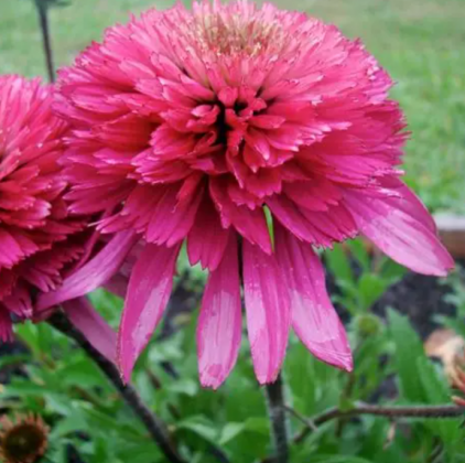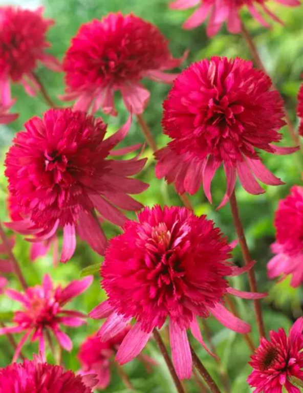 Wysoka odmiana byliny o wyprostowanym pokroju w kształcie odwróconego trójkąta, dekoracyjna ze względu na liczne czerwonopurpurowe, podwójne kwiatostany w typie anemonowym. Należy do otrzymanej w Holandii serii Cone-fections i dorasta do 90-110 cm wysokości przy średnicy około 60-75 cm, dobrze rozkrzewiając się od podstawy. Pędy i liście są ciemnozielone, pokryte krótkimi, szorstkimi w dotyku włoskami. Liście jajowato-lancetowate, odziomkowe osadzone na długich ogonkach, łodygowe – siedzące. Kwiaty są zebrane w koszyczki kwiatostanowe o średnicy około 10 cm, osadzone pojedynczo na szczytach sztywnych łodyg. U tej odmiany kwiaty języczkowe są różowe i zebrane po około 20 w pojedynczy okółek na brzegu kwiatostanu. Mają do 5,2 cm długości, 1,2 cm szerokości, są płasko rozpostarte lub tylko lekko zwisające. Wnętrze kwiatostanu wypełniają zmodyfikowane kwiaty rurkowate, ułożone na wypukłym dnie koszyczka tworząc półkulisty pompon. Są ciemniejsze, purpurowoczerwone i mocno wydłużone, przypominają wyglądem krótkie kwiaty języczkowe. Kwitnienie może trwać od lipca do października. Kwiatostany intensywnie wabią motyle oraz inne owady poszukujące nektaru, chociaż nie są dla nich zbyt użyteczne, gdyż prawie nie produkują pyłku, nektaru ani nie tworzą nasion. Bylina odporna na mróz i o niewielkich wymaganiach. Dość długowieczna i żywotna ze względu na użycie do jej hodowli gatunku Echinacea tennesseensis. Najlepiej rośnie na stanowiskach słonecznych oraz w żyznej, przepuszczalnej i umiarkowanie wilgotnej glebie. Dobry drenaż jest warunkiem prawidłowego zimowania. Po zadomowieniu się dość dobrze znosi susze. Rośliny należy co kilka lat dzielić i rozsadzać, aby utrzymać zdrowy rozwój i intensywne kwitnienie. Odmiana polecana do sadzenia na rabatach bylinowych w ogrodach przydomowych, zieleni miejskiej i osiedlowej. Kwiaty nadają się do cięcia.