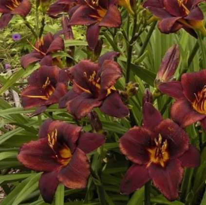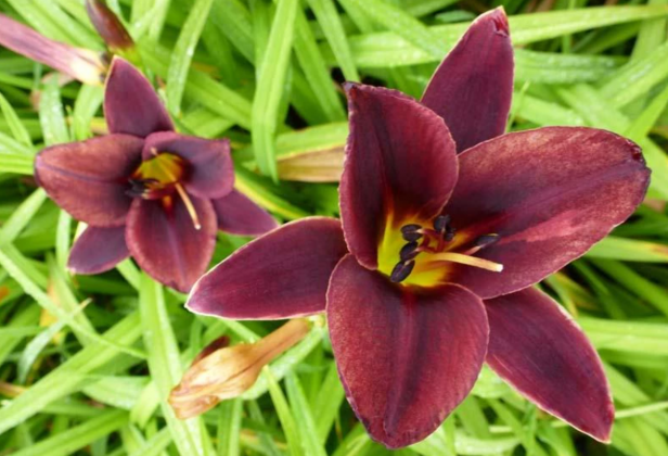 Liliowiec ‘Chocolate Candy’ to bardzo popularna i efektowna odmiana liliowca (Hemerocallis), ceniona za elegancką, kontrastową kolorystykę kwiatów. Tworzy zwarte, gęste kępy wąskich, zielonych liści, osiągając około 60–70 cm wysokości w czasie kwitnienia.