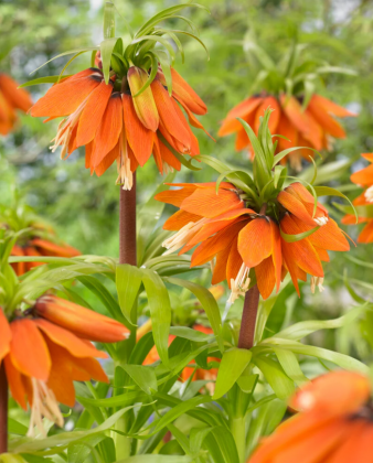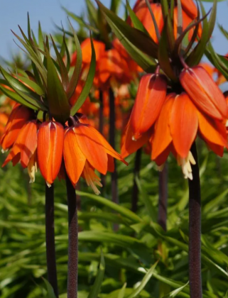 Korona cesarska ‘Orange Beauty’ to efektowna roślina cebulowa należąca do gatunku Fritillaria imperialis, ceniona za okazały pokrój i intensywną barwę kwiatów. Osiąga wysokość około 80–100 cm i wyróżnia się sztywną, wzniesioną łodygą, na szczycie której pojawia się charakterystyczny „pióropusz” z wąskich, zielonych liści.