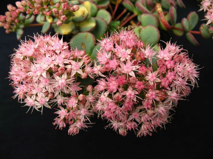 Odmiana dorasta do około 15–25 cm wysokości i stopniowo rozrasta się na boki, tworząc dekoracyjne kępy. Najbardziej efektowna jest pod koniec sezonu, gdy nad liśćmi pojawiają się drobne, różowe, gwiazdkowate kwiaty zebrane w płaskie kwiatostany.