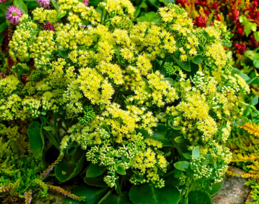 Rozchodnik ‘Sunkissed’ to niska, rozrastająca się roślina sukulentowa o mocno dekoracyjnych, mięsistych liściach. Liście mają jasnozielony kolor z ciepłym, złocistym odcieniem, który w pełnym słońcu staje się jeszcze bardziej wyrazisty, nadając roślinie efekt „muśnięcia słońcem”. Tworzy zwarte, kobiercowe kępy, które doskonale nadają się do skalniaków, na obrzeża rabat, do donic i ogrodów dachowych. W okresie letnim pojawiają się drobne, gwiazdkowate kwiaty w odcieniach żółci lub bursztynu, które przyciągają owady i dodatkowo urozmaicają kompozycję. Rozchodnik ‘Sunkissed’ najlepiej rośnie na stanowiskach słonecznych, w glebie dobrze przepuszczalnej i umiarkowanie wilgotnej, a dzięki odporności na suszę świetnie nadaje się do ogrodów o niskim nakładzie pielęgnacyjnym.