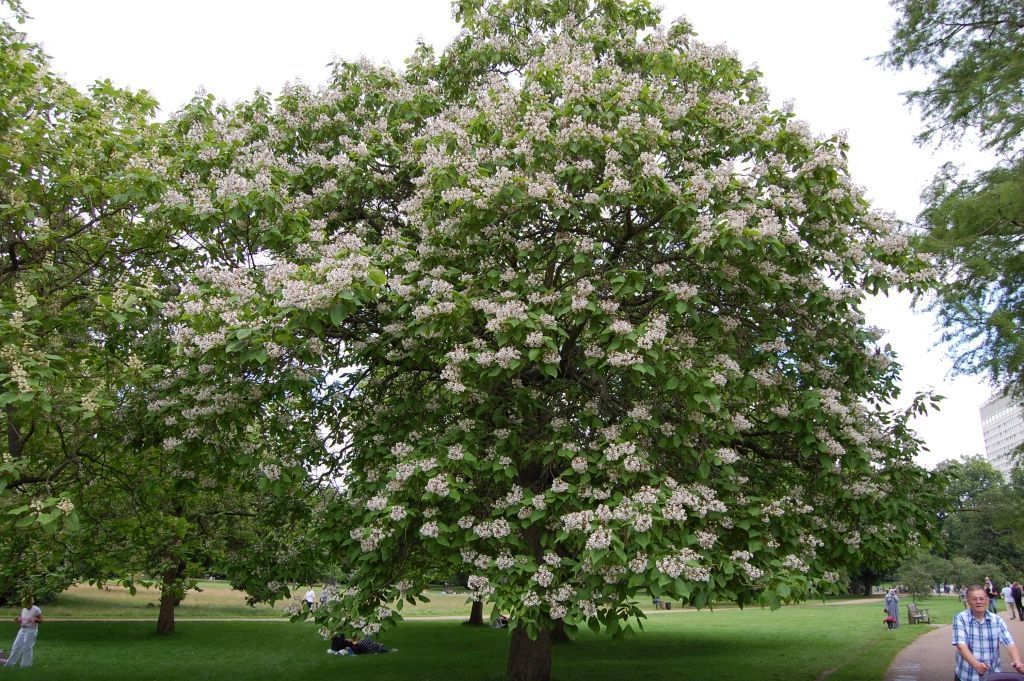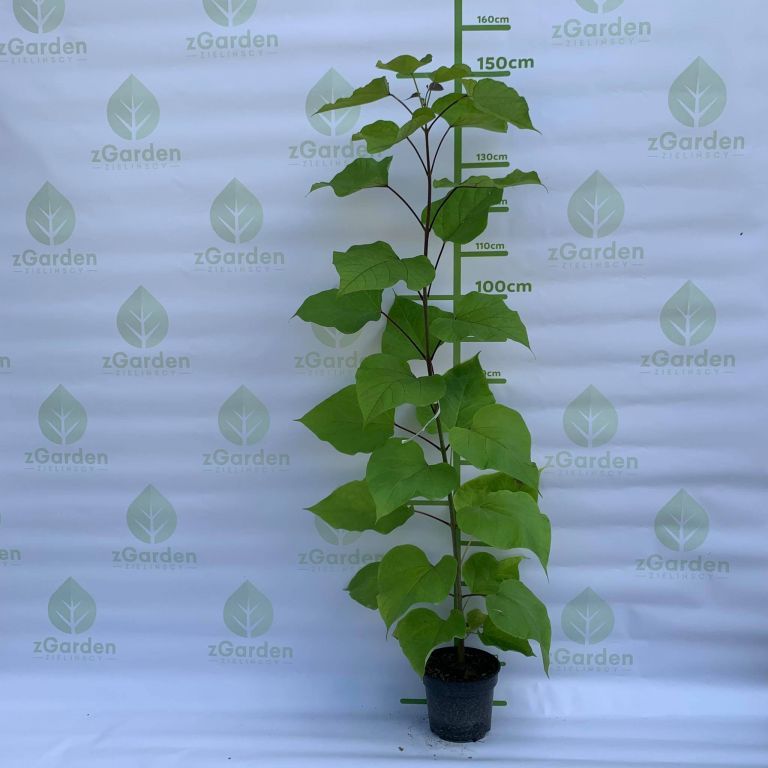 Szybkorosnące drzewo z rozłożystą koroną i często z krótkim pniem, o nieco egzotycznym wyglądzie. Osiąga 10 m wys. i 6 m szer. Liście do 20 cm, sercowate. Kwiaty białe, zebrane w kwiatostany, do 35 cm. Owoce, długie strąki, pozostają na drzewie do wiosny. Stanowisko słoneczne lub półcieniste, osłonięte. Wymaga żyznej, uprawnej gleby. Młode rośliny wrażliwe na przemarzanie. Polecany do małych ogrodów i zieleni miejskiej.