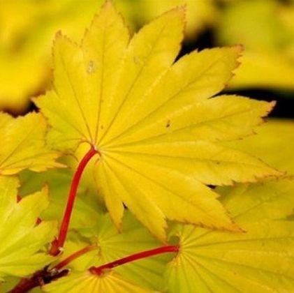 Klon japoński Shirasawy Aureum to niezwykle malownicze niskie drzewko lub krzew o żółto-zielonych liściach. Kolor liści jest utrzymywany od wiosny do jesieni, jesienią liście przebarwiają się na odcienie pomarańczy. Rośnie bardzo powoli.i. Wymaga stanowisk osłoniętych, półcienistych. Gleba żyzna, próchnicza, wymaga ściółkowania.Młode sadzonki wymagają okrycia na zimę. Klon palmowy niskie drzewko lub krzew o żółto-zielonych liściach. Kolor liści jest utrzymywany od wiosny do jesieni, jesienią liście przebarwiają się na odcienie pomarańczy. Idealnie nadaje się na suche tarasy, murki skalne, skalniaki.