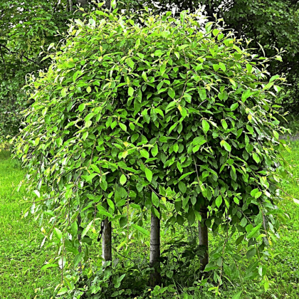 Wierzba ‘Kilmarnock’ na pniu to wyjątkowo dekoracyjne, niewielkie drzewko o parasolowatym pokroju i zwisających pędach. Jej długie, cienkie gałązki opadają kaskadowo ku ziemi, tworząc efektowną, „płaczącą” koronę. Wczesną wiosną pojawiają się charakterystyczne, srebrzyste bazie, które z czasem nabierają delikatnie żółtawego odcienia, dodając roślinie uroku.