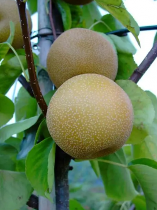 Grusza azjatycka ‘Hakko’ (Pyrus pyrifolia ‘Hakko’) to cenna odmiana pochodząca z Japonii, wyróżniająca się dekoracyjnym wyglądem oraz pysznymi, chrupiącymi owocami. Drzewo rośnie umiarkowanie silnie, tworząc regularną, rozłożystą koronę, i osiąga wysokość około 3–4 metrów. Wiosną, zwykle w kwietniu, ‘Hakko’ obficie kwitnie białymi, pachnącymi kwiatami, które przyciągają owady zapylające. Owoce dojrzewają w drugiej połowie sierpnia lub na początku września – są duże, kuliste, o złocistobrązowej skórce pokrytej delikatnymi przetchlinkami. Miąższ jest jasnożółty, soczysty, chrupiący i bardzo słodki, o orzeźwiającym smaku, przypominającym połączenie gruszki i jabłka. Odmiana ta najlepiej rośnie w miejscach słonecznych i ciepłych, w żyznej, umiarkowanie wilgotnej i dobrze przepuszczalnej glebie. ‘Hakko’ jest odporna na mróz i choroby, szczególnie na parcha gruszy. Ze względu na swój egzotyczny wygląd i smaczne owoce jest doskonałym wyborem zarówno do ogrodów przydomowych, jak i sadów amatorskich.