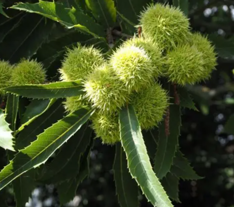 Kasztan jadalny szczepiony ‘Marrone di Martanì’ (Castanea sativa ‘Marrone di Martanì’) to szlachetna odmiana kasztana, ceniona przede wszystkim za duże, smaczne i łatwe do obierania owoce. Drzewo charakteryzuje się średnim tempem wzrostu i regularną, dobrze uformowaną koroną, dzięki czemu świetnie sprawdza się zarówno w sadach towarowych, jak i w ogrodach przydomowych. Kwiaty pojawiają się na przełomie czerwca i lipca, są miododajne i chętnie odwiedzane przez owady zapylające. Owoce dojrzewają jesienią, zazwyczaj we wrześniu i październiku. Odmiana ‘Marrone di Martanì’ wyróżnia się bardzo dobrą jakością kasztanów – są one duże, pełne, o słodkim smaku i delikatnym miąższu, doskonałe do pieczenia, gotowania czy wykorzystania w przetworach. Dzięki szczepieniu drzewo owocuje szybciej niż formy siewne i daje plon bardziej wyrównany, a także powtarzalny z roku na rok. Najlepiej rośnie na stanowiskach słonecznych, w glebach żyznych, przepuszczalnych, o odczynie lekko kwaśnym do obojętnego. Jest dość odporny na mróz, choć młode egzemplarze warto zabezpieczać w surowsze zimy. To cenna odmiana dla miłośników uprawy kasztanów, łącząca walory użytkowe z dekoracyjnym wyglądem drzewa.