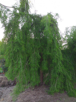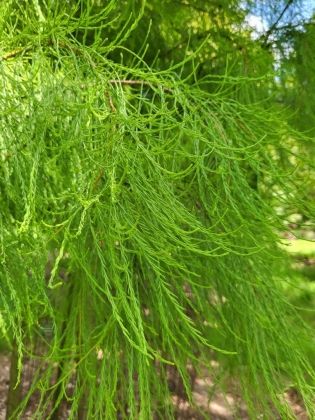 Cyprysik błotny ‘Nutans’ (Taxodium distichum ‘Nutans’) to atrakcyjna, wolno rosnąca odmiana cypryśnika, wyróżniająca się smukłym, strzelistym pokrojem i delikatnie przewieszającymi się wierzchołkami pędów. Drzewo to pochodzi od gatunku naturalnie występującego na podmokłych terenach Ameryki Północnej, dlatego dobrze znosi wilgotne gleby i okresowe zalewanie wodą. Mimo swojej nazwy, doskonale radzi sobie także w przeciętnych warunkach ogrodowych, o ile podłoże jest dostatecznie wilgotne i przepuszczalne.