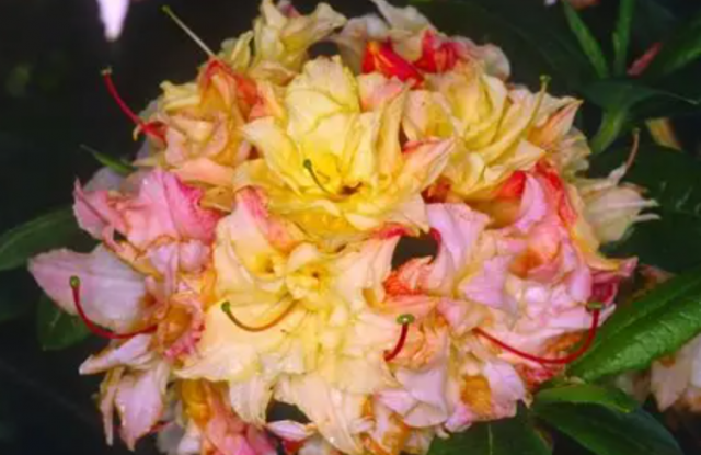 Azalia o liściach sezonowych i pokroju szerokim, wyprostowanym. Po 10 latach dorasta do około 1,8 m wysokości i prawie takiej samej szerokości. Liście ciemnozielone, błyszczące. Młode listki mają lekko brązowawy odcień. Charakterystyczne i bardzo piękne są u tej odmiany kwiaty, pełne i wielobarwne, w odcieniach różowo-żółto-kremowych, z pofalowanym i miejscami bardziej różowym brzegiem. Nasycenie barw zmienia się podczas kwitnienia. Kwiaty zebrane są po 5-7 sztuk w efektowne, kuliste kwiatostany. Średnica pojedynczego kwiatu wynosi 5 cm, a każdy kwiat składa się z około 12 płatków. Odmiana wymaga stanowisk słonecznych oraz gleb wilgotnych, kwaśnych i próchnicznych. Roślina mrozoodporna, polecana do nasadzeń pojedynczo i w grupach, w ogrodach przydomowych, w towarzystwie karłowych azalii japońskich i różaneczników.