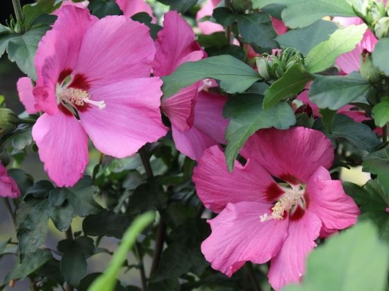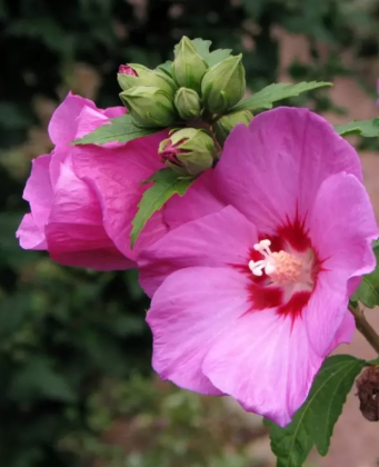 Ketmia ‘Woodbridge’ to dekoracyjna odmiana hibiskusa syryjskiego ceniona za duże, efektowne kwiaty w intensywnym, różowo-purpurowym kolorze z wyraźnym, ciemnoczerwonym środkiem. Kwiaty są pojedyncze, lejkowate i pojawiają się licznie na pędach, stanowiąc wyrazistą ozdobę ogrodu w drugiej połowie lata.