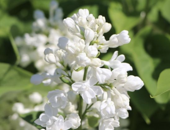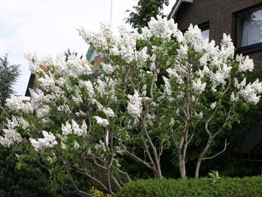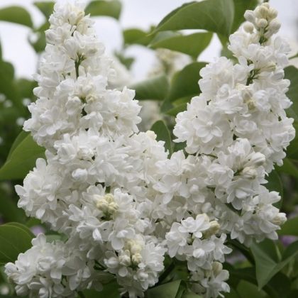 Stara ale do dziś popularna odmiana lilaka o pełnych, białych kwiatach, uzyskana przez Victora Lemoine w 1890 r. Jest to krzew liściasty lub niewielkie drzewo o kształtnej koronie. Rośnie dosyć wolno, dorasta do 3-4 m wysokości. Tworzy widlasto rozgałęzione pędy oraz sercowate liście osadzone na niezbyt długich ogonkach. Liście są ciemnozielone, skórzaste i błyszczące. Pąki kwiatowe są żółtokremowe, ale rozwijające się z nich kwiaty mają kolor czystej bieli. Kwiaty są pełne, zbudowane z rurki i licznych, szeroko rozpostartych łatek w kształcie łódeczki, o wywiniętych do góry brzegach, mają do 1,5 cm średnicy. Kwiaty są liczne, zebrane w gęste, zbite kwiatostany złożone z kilku stożkowatych wiech osadzonych na szczytach pędów. Mają około 15 cm długości. Krzew kwitnie w maju, po przekwitnięciu pozostaje ozdobny z liści. Gatunek łatwy w uprawie. Preferuje gleby żyzne, wilgotne i przepuszczalne, obojętne do lekko zasadowych, ale całkiem dobrze rośnie także na glebach mniej urodzajnych. Znosi suszę i jest odporny na mróz. Wymaga stanowisk słonecznych. Sadzony w miejscach cienistych kwitnienie mniej obficie. Po kwitnieniu, przede wszystkim ze względów estetycznych, warto usuwać zaschnięte pozostałości kwiatostanów, co również wpływa na lepsze kwitnienie w przyszłym roku. W przypadku roślin szczepionych należy pamiętać o usuwaniu dzikich pędów wyrastających z podkładki. Odmiana polecana do sadzenia w ogrodach przydomowych, osiedlowych, na działkach, w parkach.
