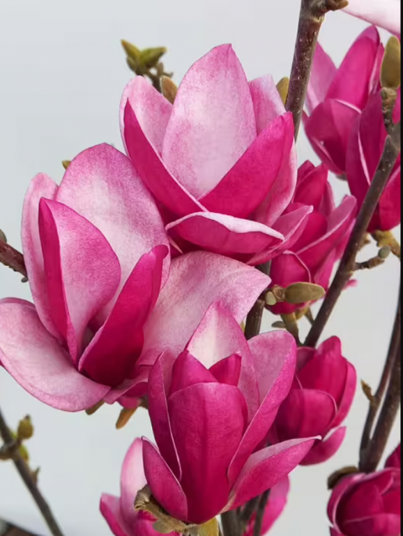 Magnolia STARBURST (Magnolia ‘Starburst’) to bardzo dekoracyjna odmiana magnolii o dużych, efektownych kwiatach w różowo-purpurowym kolorze. Kwiaty mają gwiaździsty kształt z długimi, wąskimi płatkami, dzięki czemu wyglądają bardzo elegancko i przyciągają uwagę w ogrodzie.