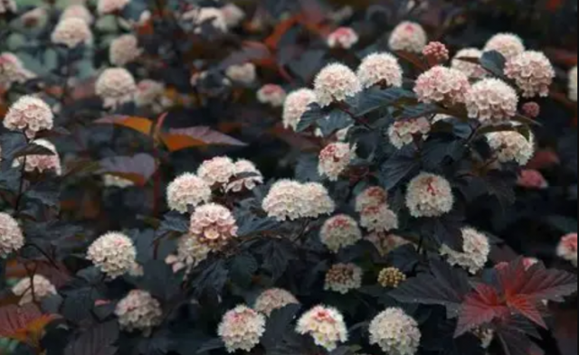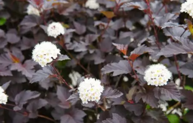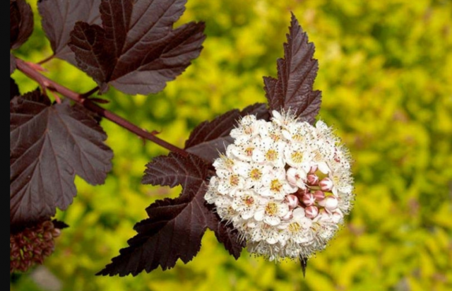 Pęcherznica kalinolistna ‘Diabolo’ (Physocarpus opulifolius ‘Diabolo’) to silnie rosnący, dekoracyjny krzew liściasty o intensywnie purpurowych, niemal bordowych liściach, które utrzymują głęboki kolor przez cały sezon. Młode przyrosty mają szczególnie nasyconą barwę, a jesienią liście mogą przybierać dodatkowo czerwonawe odcienie, co jeszcze zwiększa walory ozdobne rośliny.
