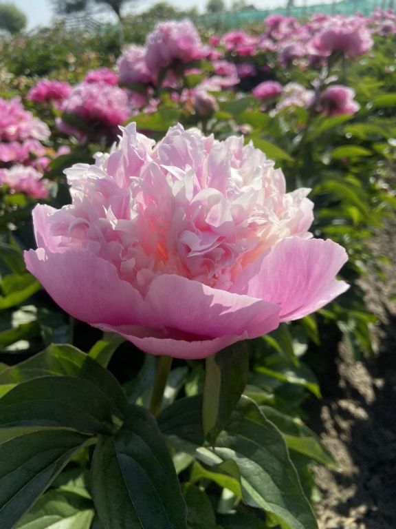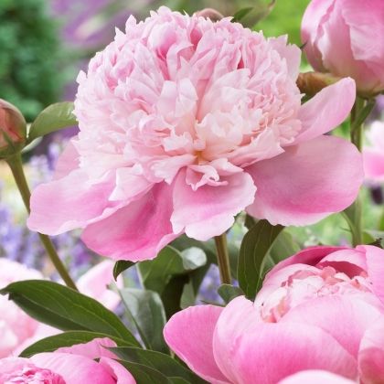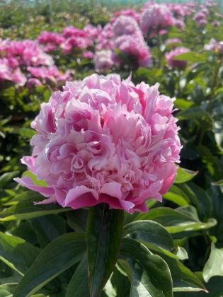 Piwonia ‘Lady Anna’ (Paeonia lactiflora ‘Lady Anna’) to elegancka, ozdobna piwonia zielna o dużych, gęsto pełnych kwiatach w delikatnych odcieniach różowo-lawendowych i kremowych, które tworzą miękki, subtelny efekt kolorystyczny w ogrodzie. Kwiaty mają faliste płatki i przyjemny zapach, a ich wyrazista, ale jednocześnie łagodna kolorystyka sprawia, że roślina jest chętnie sadzona zarówno na rabatach, jak i w kompozycjach z innymi bylinami. ‘Lady Anna’ osiąga wysokość około 80–90 cm, tworzy zwartą kępę ciemnozielonych liści, które pozostają dekoracyjne przez cały sezon, a okres kwitnienia przypada zwykle na maj–czerwiec. Roślina ma mocne, odporne na wiatr pędy, dobrze znosi warunki uprawy w pełnym słońcu lub półcieniu na glebie żyznej, przepuszczalnej i umiarkowanie wilgotnej, i doskonale nadaje się także jako kwiat cięty do wazonu dzięki trwałości kwiatów.