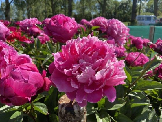 Piwonia ‘Red Sarah Bernhardt’ (Paeonia lactiflora ‘Red Sarah Bernhardt’) to efektowna bylina ogrodowa o dużych, pełnych, dwuwarstwowych kwiatach w intensywnych odcieniach czerwieni, fuksji lub purpurowo-czerwonego, które mają lekkie połyski i tworzą bardzo dekoracyjny, „gęsty” kwiatostan. Kwiaty są słodko pachnące, dorastają do ponad 15 cm średnicy i osadzone są na mocnych, wyprostowanych łodygach wspieranych przez jasnozielone liście, co sprawia, że roślina świetnie prezentuje się zarówno w ogrodzie, jak i jako kwiat cięty do wazonu. Odmiana ta tworzy zwarte kępy i dorasta do około 80–90 cm wysokości, najlepiej rośnie na stanowiskach słonecznych lub półcienistych, w żyznej i dobrze przepuszczalnej glebie. ‘Red Sarah Bernhardt’ kwitnie późną wiosną i wczesnym latem (zwykle maj–czerwiec) i jest mrozoodporna, dzięki czemu corocznie powraca w ogrodzie z obfitą ilością okazałych kwiatów.