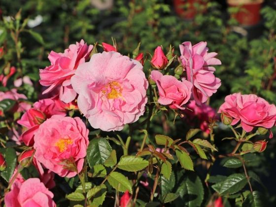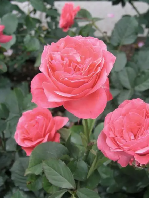 Róża pnąca ‘Camelot’ (Rosa ‘Camelot’) to silnie rosnąca odmiana o dużych, romantycznych kwiatach w odcieniach ciepłego różu z subtelnymi morelowymi tonami. Kwiaty są pełne, osiągają średnicę około 8–10 cm i zebrane są w efektowne kiście. Ich barwa może delikatnie zmieniać się w zależności od temperatury i nasłonecznienia, co dodaje roślinie wyjątkowego uroku. Dodatkowym atutem jest przyjemny, lekko owocowy zapach.
