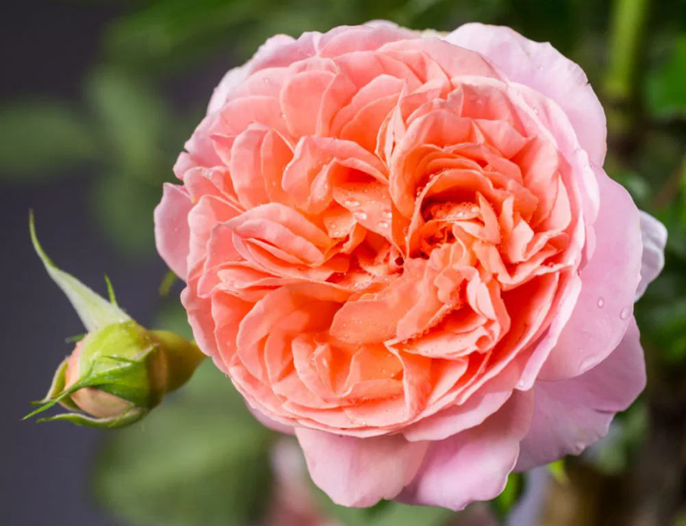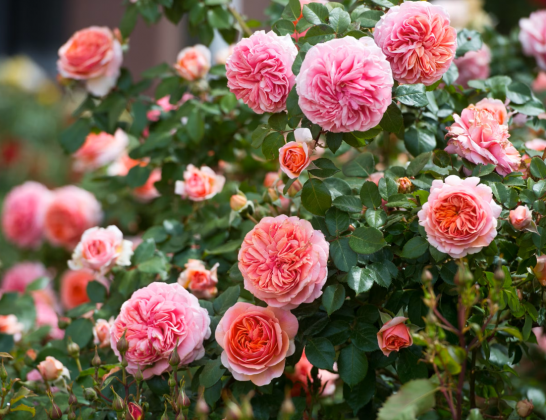 Róża angielska ‘Chippendale’ (Rosa ‘Chippendale’) to wyjątkowo dekoracyjna odmiana o dużych, pełnych kwiatach w ciepłym odcieniu różu z nutą łososiowo-morelową. Barwa kwiatów może delikatnie zmieniać się w zależności od temperatury i nasłonecznienia – od głębszego różu po bardziej pastelowe tony. Kwiaty osiągają średnicę około 8–12 cm i mają romantyczną, nostalgiczną formę z gęsto ułożonymi płatkami. Dodatkowym atutem jest przyjemny, lekko owocowy zapach.