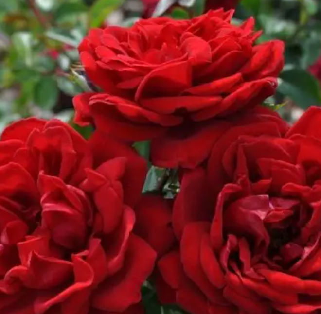 Róża wielokwiatowa EROTICA (Rosa ‘Erotica’) to efektowna odmiana róży ogrodowej o dużych, pełnych kwiatach w intensywnym, ciemnoczerwonym kolorze. Kwiaty mają elegancki, klasyczny kształt i delikatny, przyjemny zapach. Najczęściej pojawiają się pojedynczo na długich, mocnych pędach, dzięki czemu odmiana ta jest często wykorzystywana również jako róża na kwiaty cięte. Ciemnoczerwone płatki pięknie kontrastują z ciemnozielonymi, błyszczącymi liśćmi.